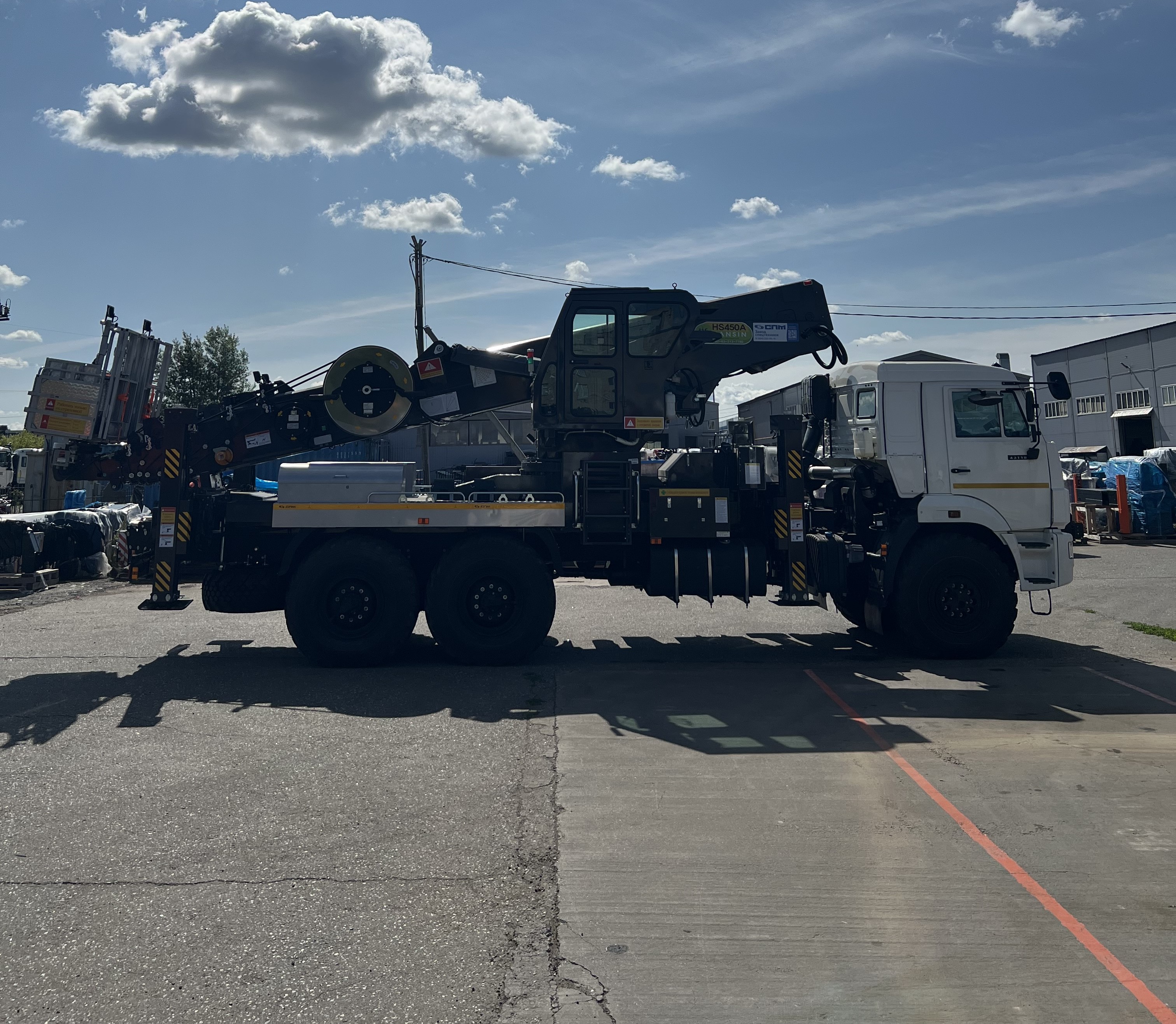 Автовышка Hansin 450А на базе КАМАЗ 43118 - устройство для поднятия на высоту, смонтированное на автомобильном шасси с полным приводом. Используется для всех видов высотных работ: ремонтных, строительных, по обслуживанию конструкций и так далее.