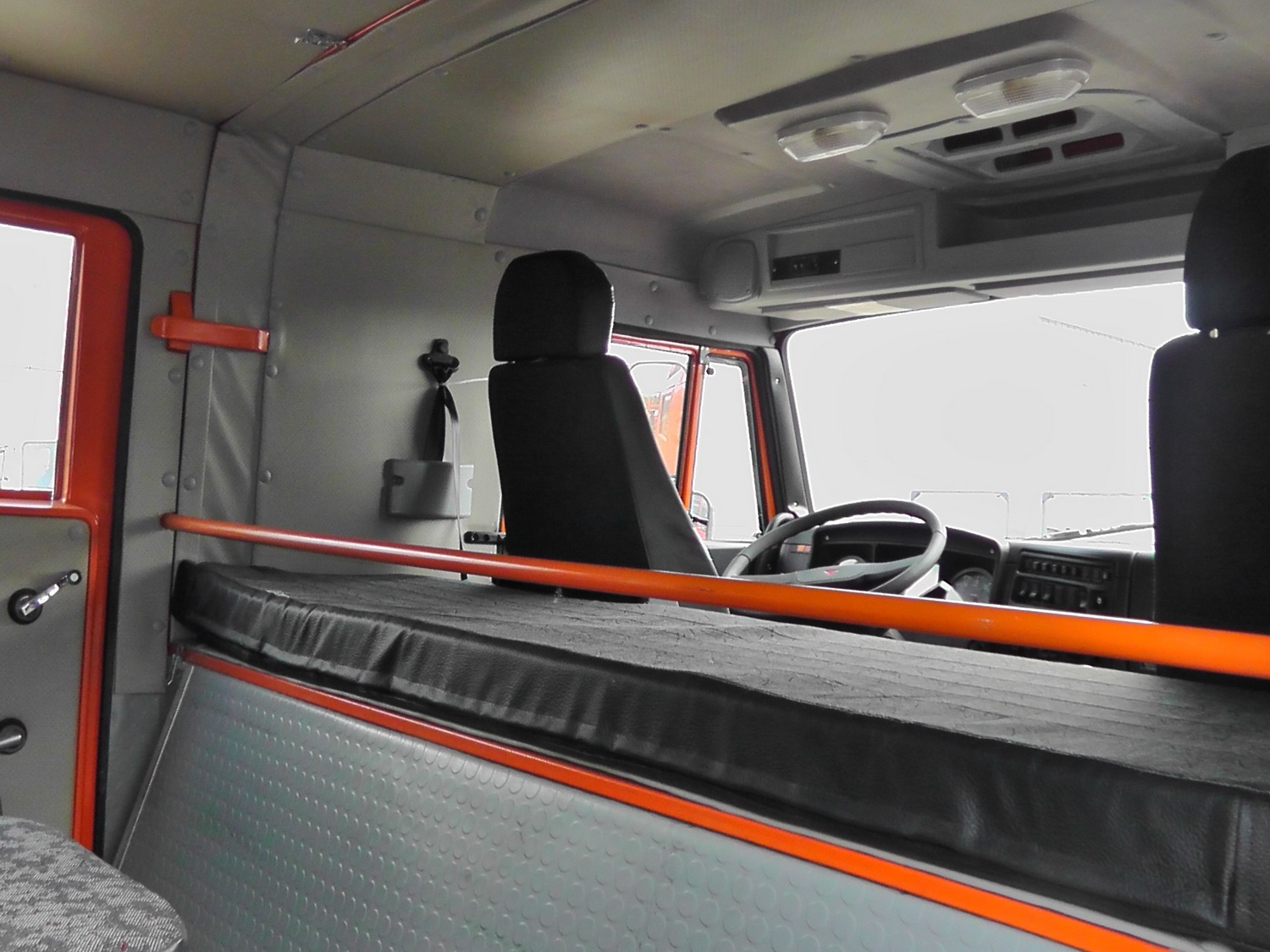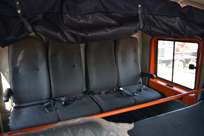 - Двухрядная кабина на шасси КАМАЗ 43118 позволяет без привлечения дополнительного транспорта организовать перевозку комплексной бригады из шести человек. Двухрядная кабина с единым пространством, состоит из двух, соединенных отсеков, имеющих уплотнительные элементы. Первый отсек - кабина производства ПАО "КАМАЗ", с доработанной задней частью, откидывающаяся для доступа к двигателю. Установка и фиксация кабины остаются без изменений. Второй отсек - дополнительная четырехместная кабина для пассажиров, с люком доступа к коробке и КОМ, оборудованная ступеньками и держателями, для посадки и высадки пассажиров, пассажирскими сиденьями с ремнями безопасности и подголовниками, с плафонами освещения, неподъемная, стационарная, закрепленная через шесть подрессоренных узлов. Двери дополнительной кабины открываются с обоих сторон, как и основной кабины. Стекла опускаются и поднимаются также как и на основной кабине. Все четыре двери двухрядной кабины снаружи запираются на ключ.
