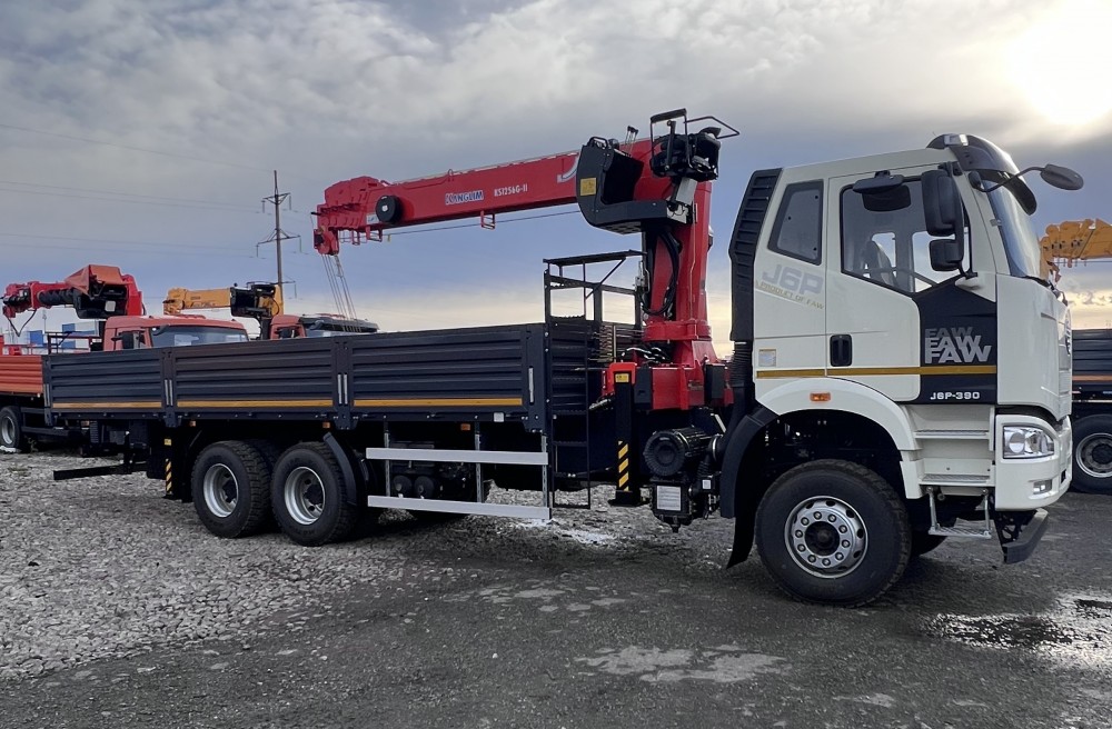 Бортовой автомобиль FAW 6х4 с КМУ Kanglim KS1256 по выгодной цене